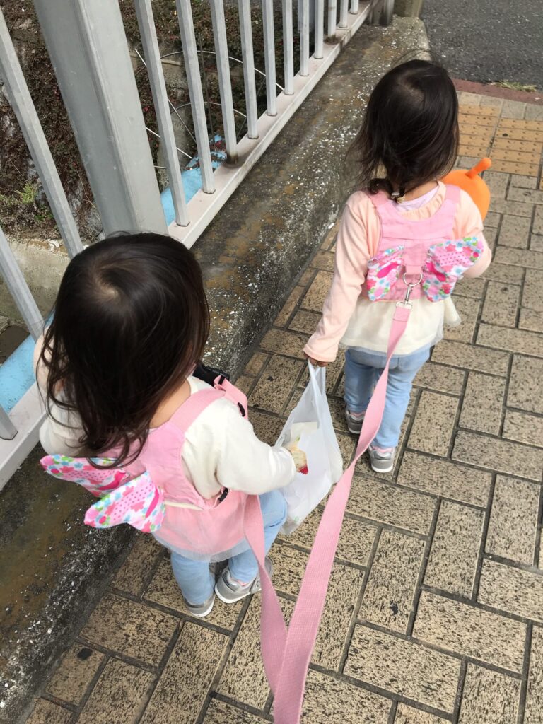 ベビーカー拒否が始まったころ、近場への散歩にハーネスは欠かせませんでした。車や自転車が多い道で、2人同時に走り出したら1人では追いかけられない。平日ワンオペ、知り合いもいない状況で、子どもの命を守るために本当に役立ちました。